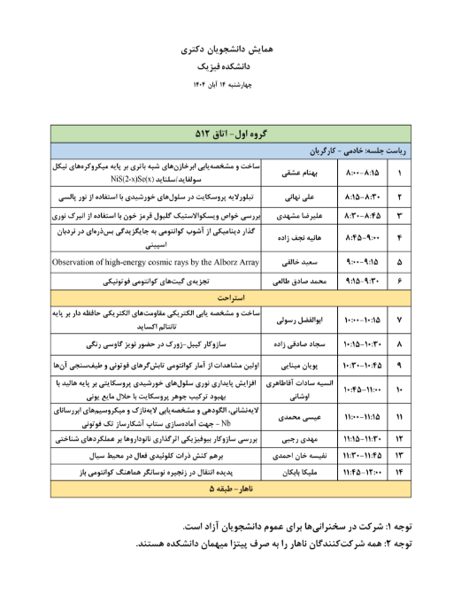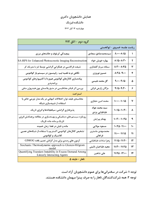 The list of courses offered by the Faculty of Physics in the first semester of 1404-1405