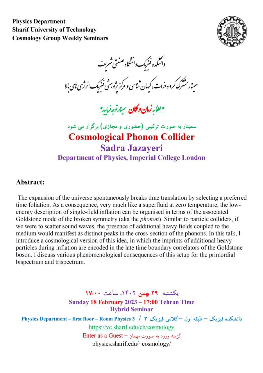 دانشکده فیزیک - طبقه اول - کلاس فیزیک ۳  کلاس مجازی گروه کیهانشناسی دانشکده فیزیک ​