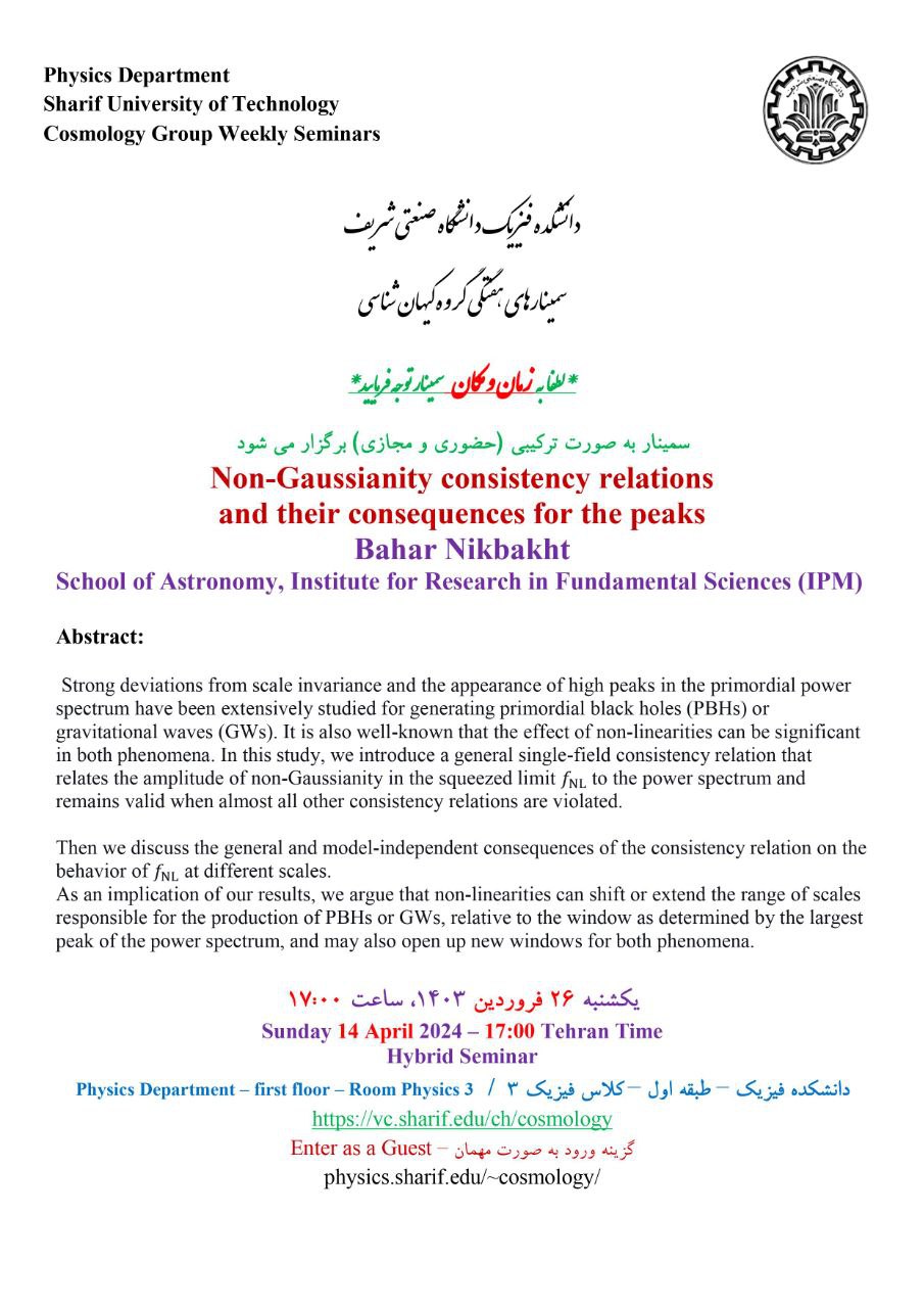 دانشکده فیزیک - طبقه اول - کلاس فیزیک ۳  کلاس مجازی گروه کیهانشناسی دانشکده فیزیک ​