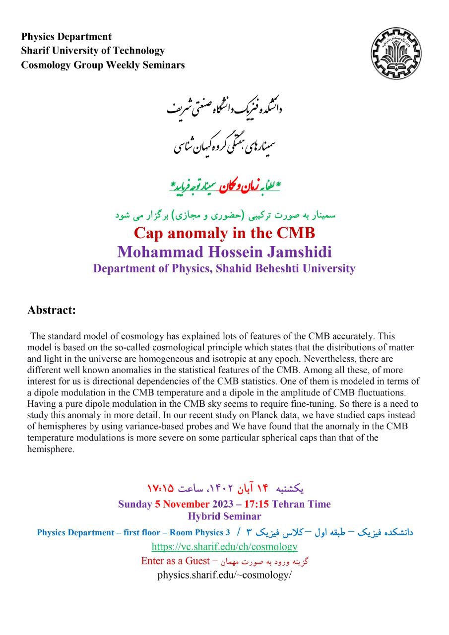 دانشکده فیزیک -  طبقه‌ی اول - کلاس فیزیک ۳  کلاس مجازی گروه کیهانشناسی دانشکده فیزیک ​