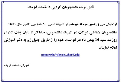 لیست دروس ارائه شده دانشکده فیزیک در نیمسال دوم 1405-1404